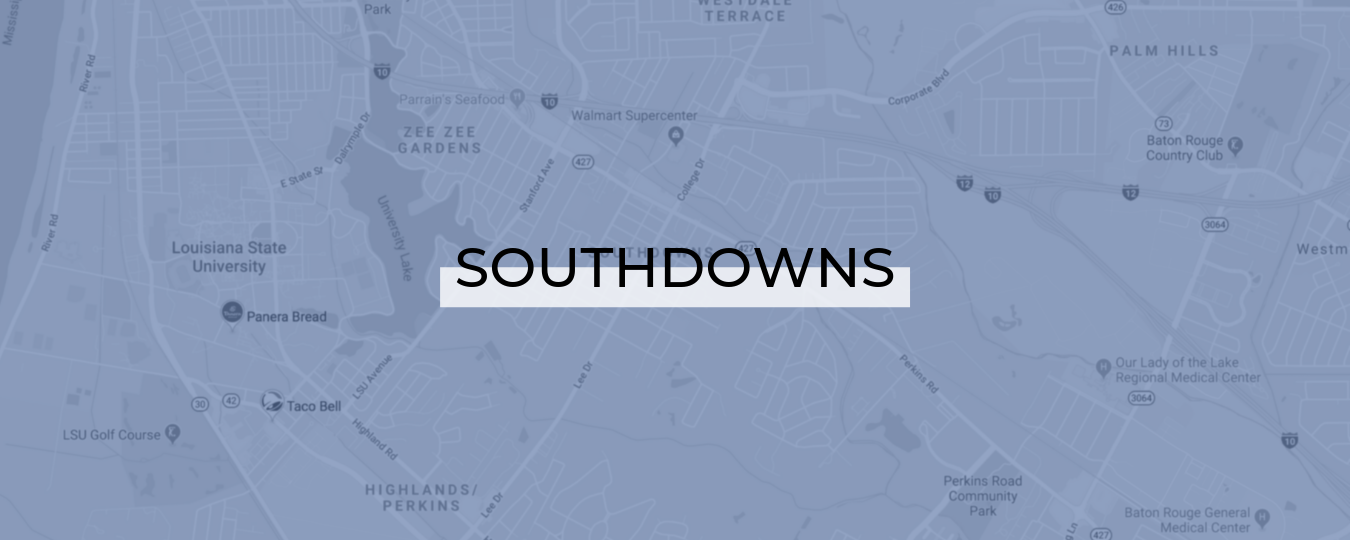 Southdowns stretches across some of the busiest intersections in town. To the south, you’ll find neighborhood houses with spacious backyards. To the west, Southdowns grows busier with popular local restaurants and bars as you drive along Perkins Road and approach the Perkins Road Overpass Merchants’ District. The neighborhood itself is full of subdivisions, small parks and walkable attractions. Nearby is the LSU lakes, where residents walk, jog and take bike rides. While you’ll find a few college students in rental homes because of its proximity to campus, Southdowns is more suited to home-owners.